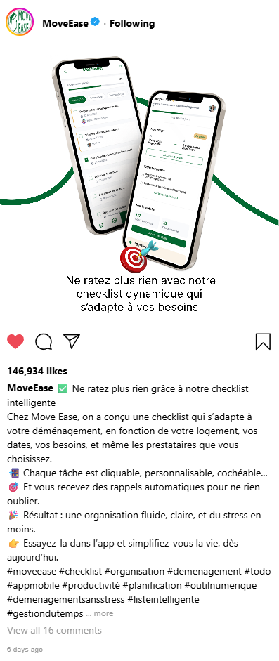 Conception UI/UX et stratégie marketing complète pour Move Ease, plateforme fictive dédiée à la gestion de déménagement : prototype Figma, front responsive et approche SEO multicanal.