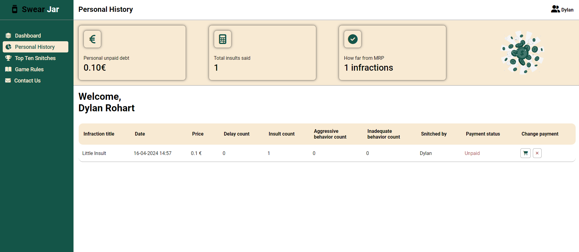 SwearJar constitue ainsi une étude de cas pédagogique démontrant ma capacité à concevoir une application web fonctionnelle en PHP natif, en reproduisant des problématiques réelles de gestion d’utilisateurs, d’états et de logique métier.