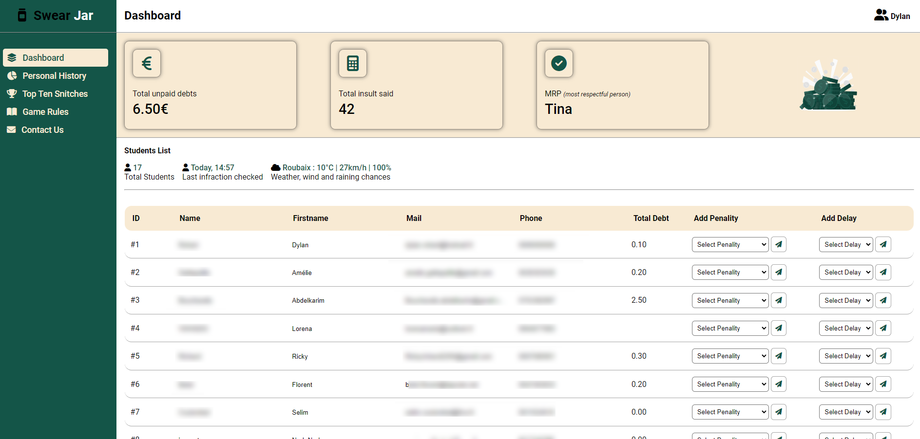 Développement d’une application web pédagogique en PHP natif permettant la gestion ludique de sanctions et contributions financières au sein d’un groupe d’apprenants.